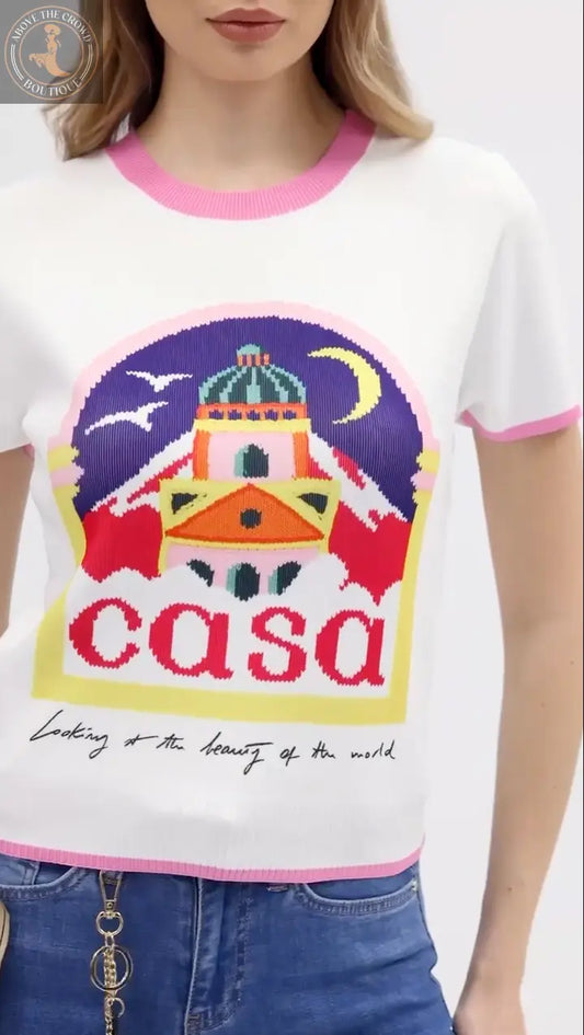 Nobello European Knit Graphic T-Shirt - Unique Women's Designer Tee