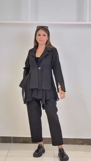 - Signature Chain Detail: Elevate your ensemble with a subtly integrated, unique chain accent, transforming a classic black blazer into a distinctive statement piece that truly sets you apart from the crowd.