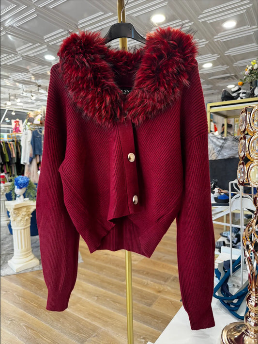 テクスチャードフェイクファーラップコート - レディースヨーロピアンスタイル