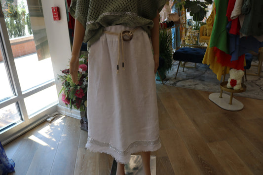 レーストリム付きホワイトリネンミディスカート - ヨーロピアンスタイルのエレガンス