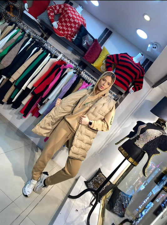 ザナルディ ファッション 3点セットスーツ – プレミアムパファーベスト+フーディー+ジョガーパンツセット