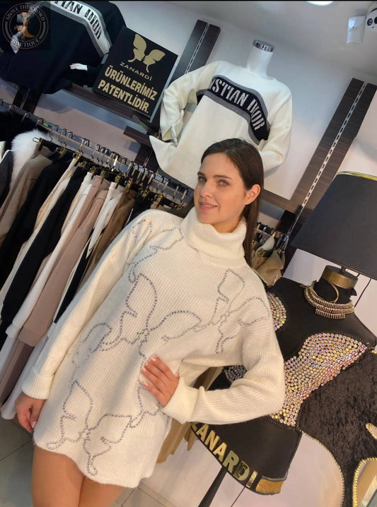 ザナルディ ファッション バタフライ クリスタル ニット セーター – フリーサイズ