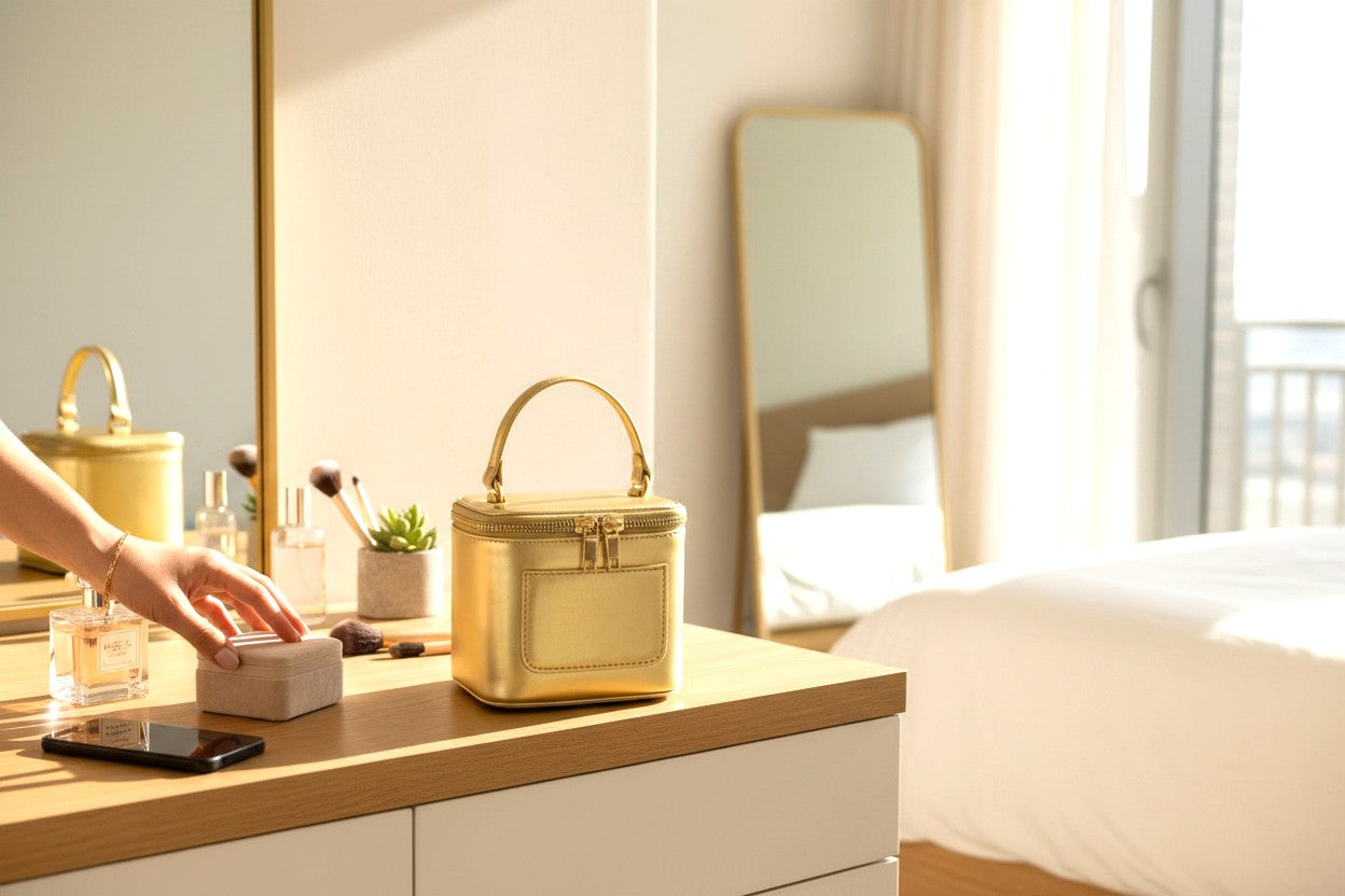 Luxurious gold-tone exterior with a subtle metallic sheen